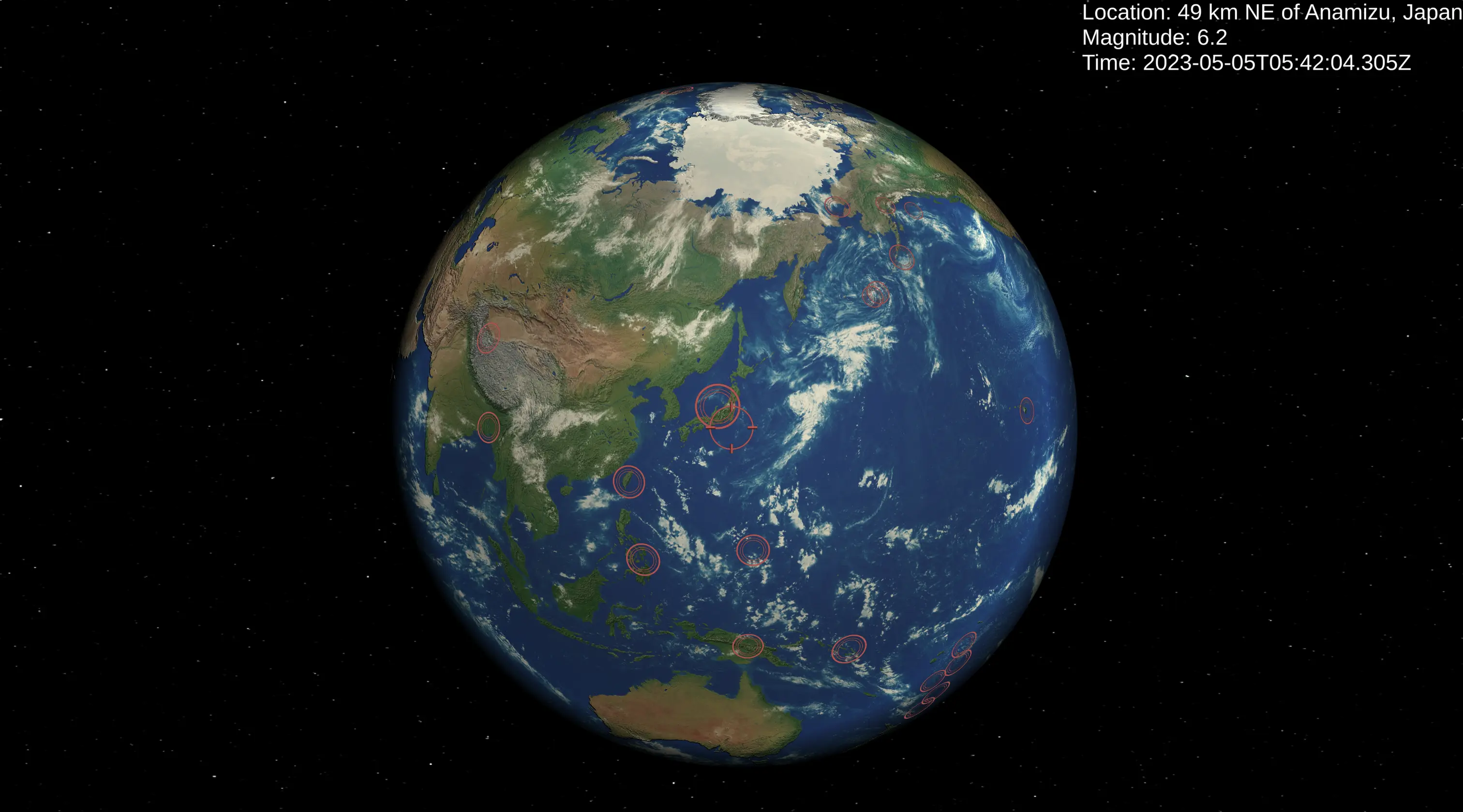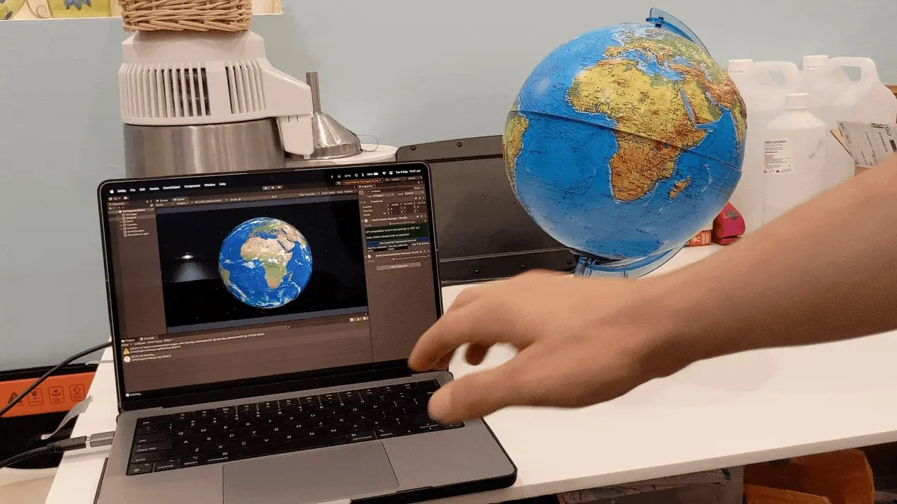 This interactive installation visualises global earthquake activity from the past 24 hours on a physical globe linked to a digital display. By combining hardware and software, users can rotate and interact with the globe to explore real-time seismic data.