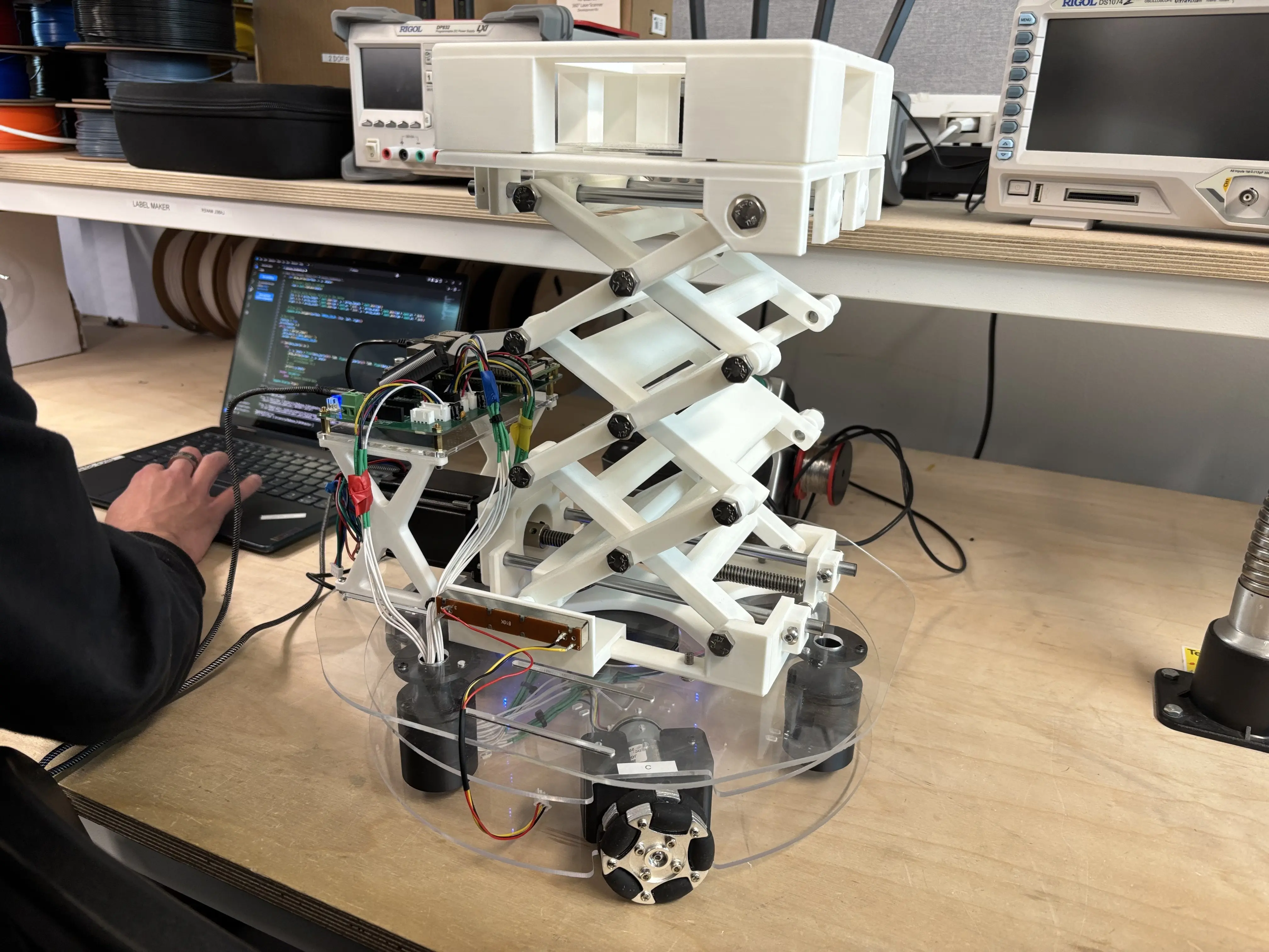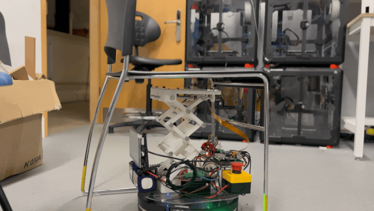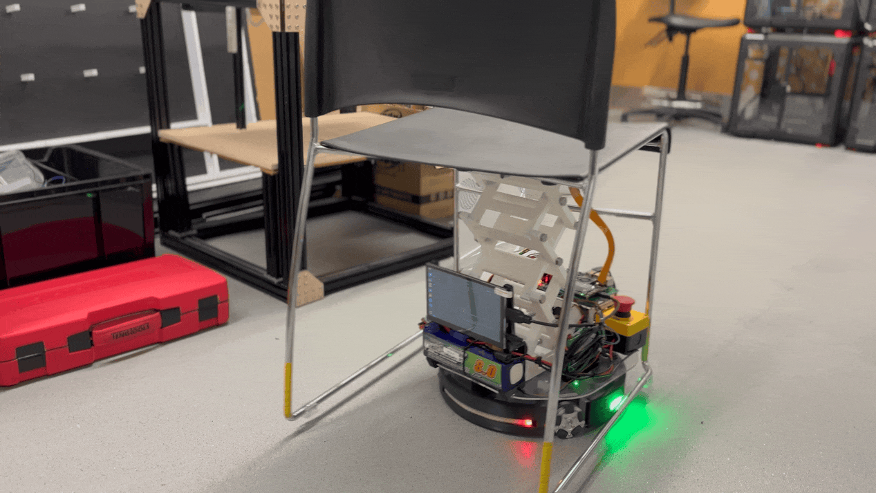- The base also contained the custom PCB for power management and speed controllers, a 24v LiPo Battery, a Raspberry Pi 5 for ROS/Lidar processing and an Arduino for controlling movement and lifting motors.