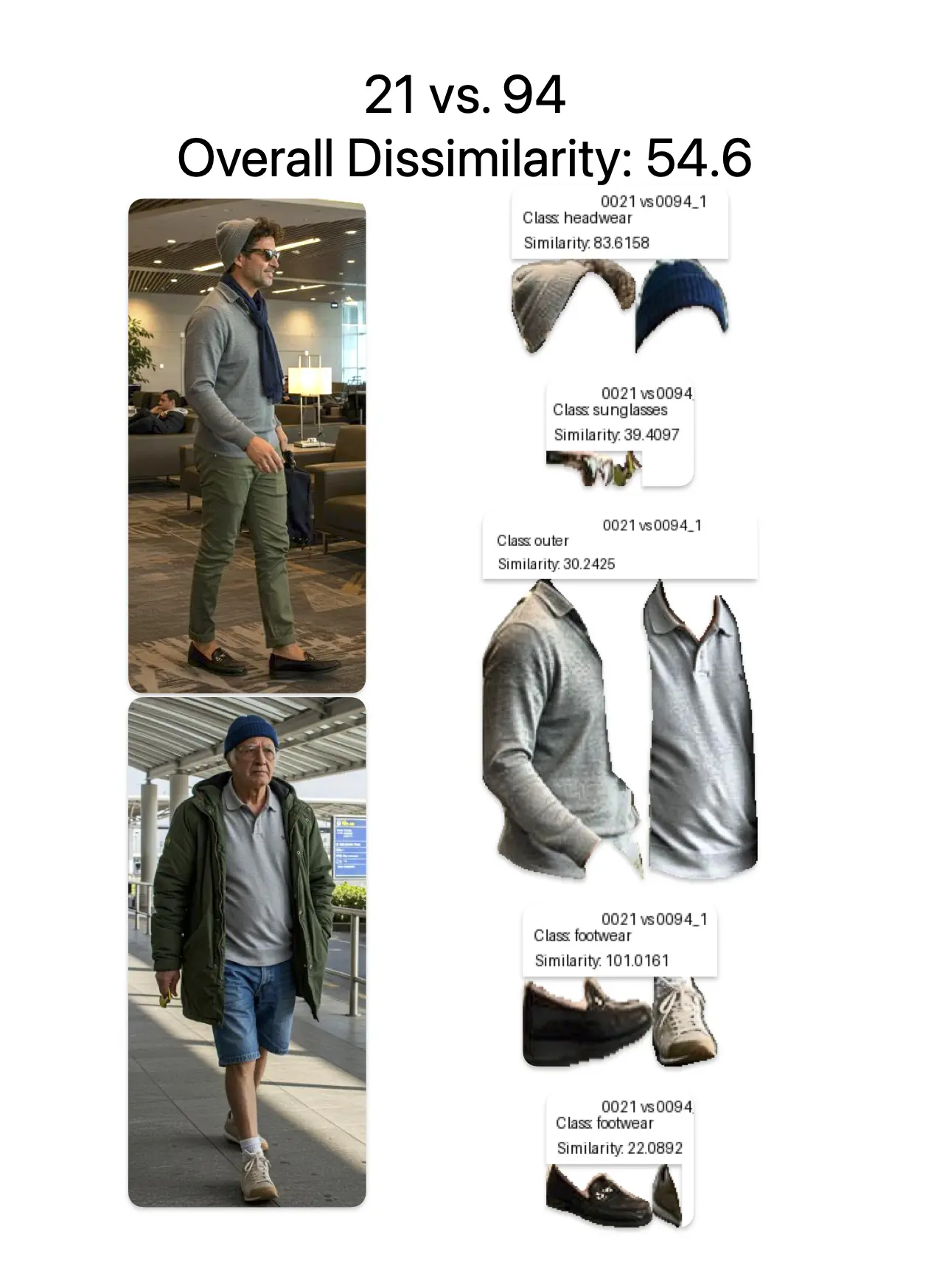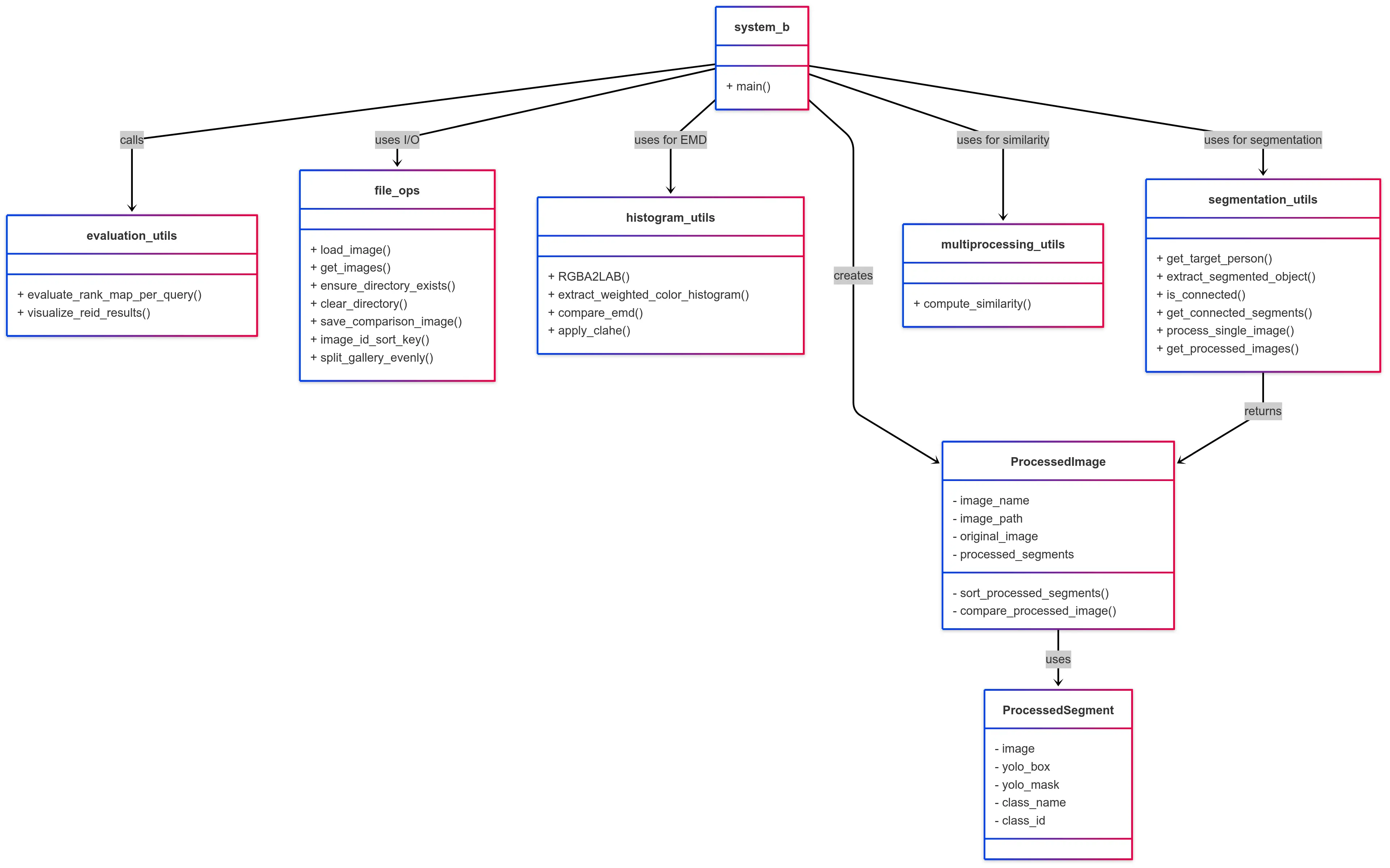 My dissertation introduced a novel hybrid approach to person re-identification (Re-ID) that integrates YOLO object segmentation with colour histogram analysis to enhance identification accuracy in challenging, real-world scenarios. The system was implemented in Python, benchmarked against ResNet-50, and tested using an ethically generated synthetic dataset to ensure privacy compliance. Results showed the hybrid method offered improved mean Average Precision (mAP) and greater robustness to background noise and lighting variability, highlighting its potential for scalable, privacy-conscious Re-ID applications such as smart city systems or missing person detection.