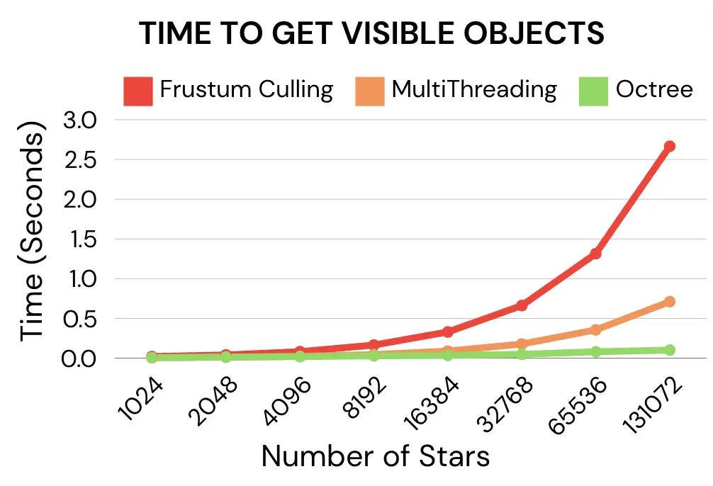 This project focused on optimising the real-time rendering of over 250,000 stars from the Gaia DR2 and RAVE DR5 datasets for a low-power computer telescope overlay. To overcome hardware limitations, I implemented spatial indexing using an Octree data structure to perform efficient frustum culling, reducing unnecessary rendering calculations. The solution achieved a significant performance improvement over traditional methods by cutting processing complexity from O(n) to O(log n + k). Through multithreading, memory optimisation, and benchmarking with Google Bench, the system was refined for responsiveness and scalability, demonstrating my ability to design efficient algorithms and optimise performance for constrained embedded environments.